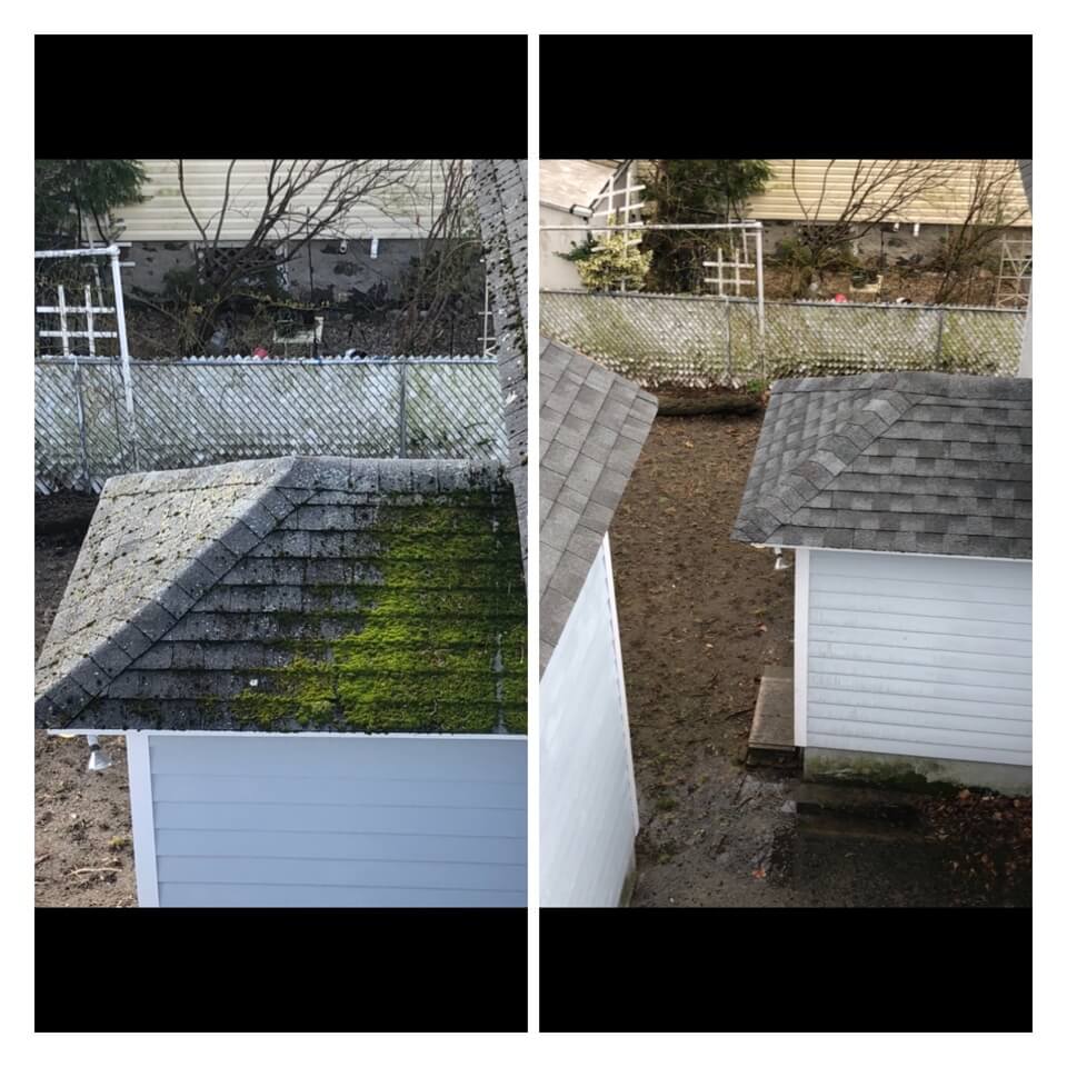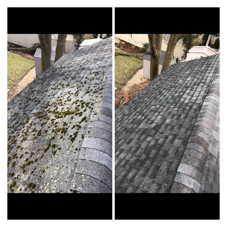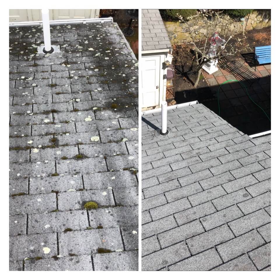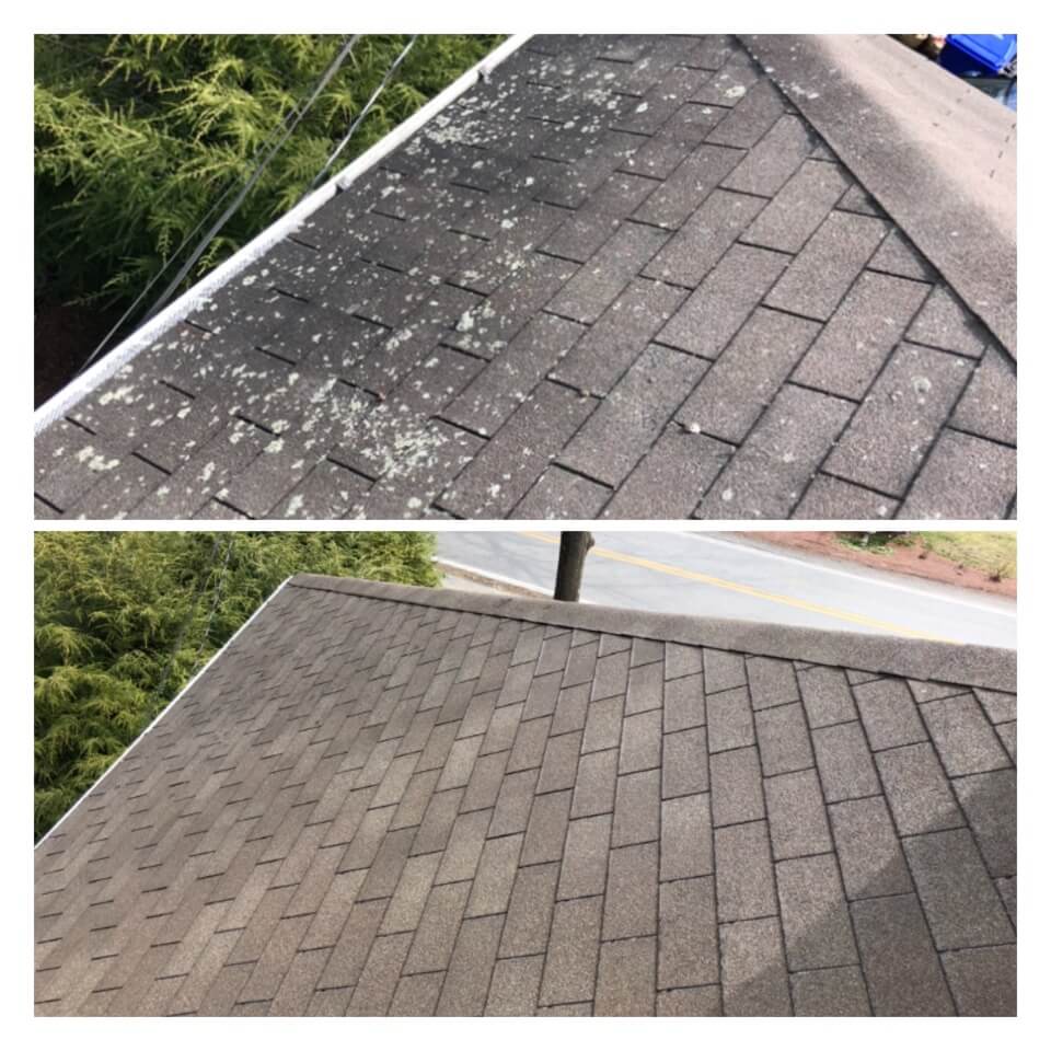 HiCleaners is the most experienced company in Hingham, MA that deals with roof washing and roof soft washing. All of our employees are trained to recognize precise solution mixing ratios to provide you with the safest and most effective soft washing service. Roofs are a commonly neglected part of a house due to the fact that most people don’t have ladders to access it, so it is very easy to just leave it alone and forget about problems that may start to arise. Just like many home owners, discoloration and small bits of moss on a roof can be overlooked because of the misconception that it is just aesthetic. However, it isn’t just aesthetic, the moss slowly lifts the granules off the shingles which in turn shorten the life of the shingle. The moss also spreads, just like any bacteria if it is left alone for too long, it can quickly become a problem that spirals out of control. Call HiCleaners for a free quote, we only use the most advanced eco-friendly solutions and equipment to make sure the job is done right, for the safety of the employees, your plants, grass, pets, and children.